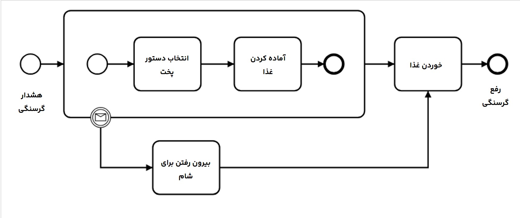• اگر رویداد ۱ رخ ندهد، وظیفه ۱ کامل شده و توکن از مسیر جریان عادی به وظیفه ۲ می‌رود.
