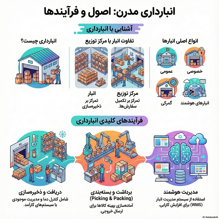 انبارها، مراکز توزیع و تأسیسات ذخیرهسازی هر یک نقشهای متمایزی در زیرساخت زنجیره تأمین ایفا میکنند.
